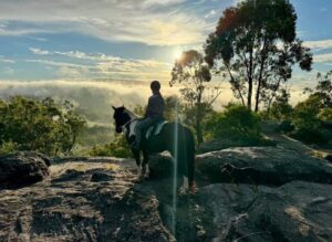 “This picture was taken at Wickham Peak in Wickham Timber Reserve, Logan Village. I trail ride a lot on the weekend. I’m not competing and it is one of my favourite rides just for the fact that it has got such a beautiful lookout. It’s got a pretty steep climb or descent depending on which way you go up/down but this was the first time we have done it at sunrise. It’s a very peaceful and beautiful spot when you reach the top. We are usually the only ones up there.